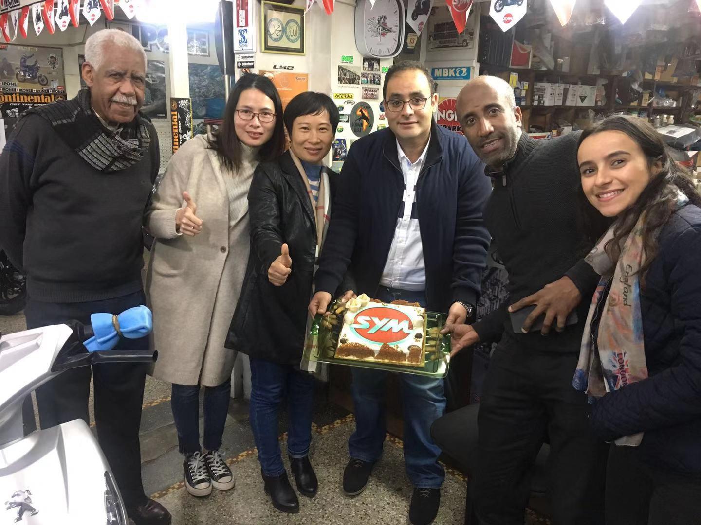 During the visit, SYM Chinese sales team visited the first SYM shop in Casablanca. Morocco customer told us that the first SYM shop owner highly had recommended the launch of SYM brand before it entered the Morocco market. This shop adheres to the philosophy of “quality first, customer first and customer satisfaction”, and has helped SYM a lot in brand promotion. During the visit, the shop owner made a special SYM cake to celebrate the arrival of the SYM team. This visit enhanced the mutual understanding and trust between SYM and the distribution partners.