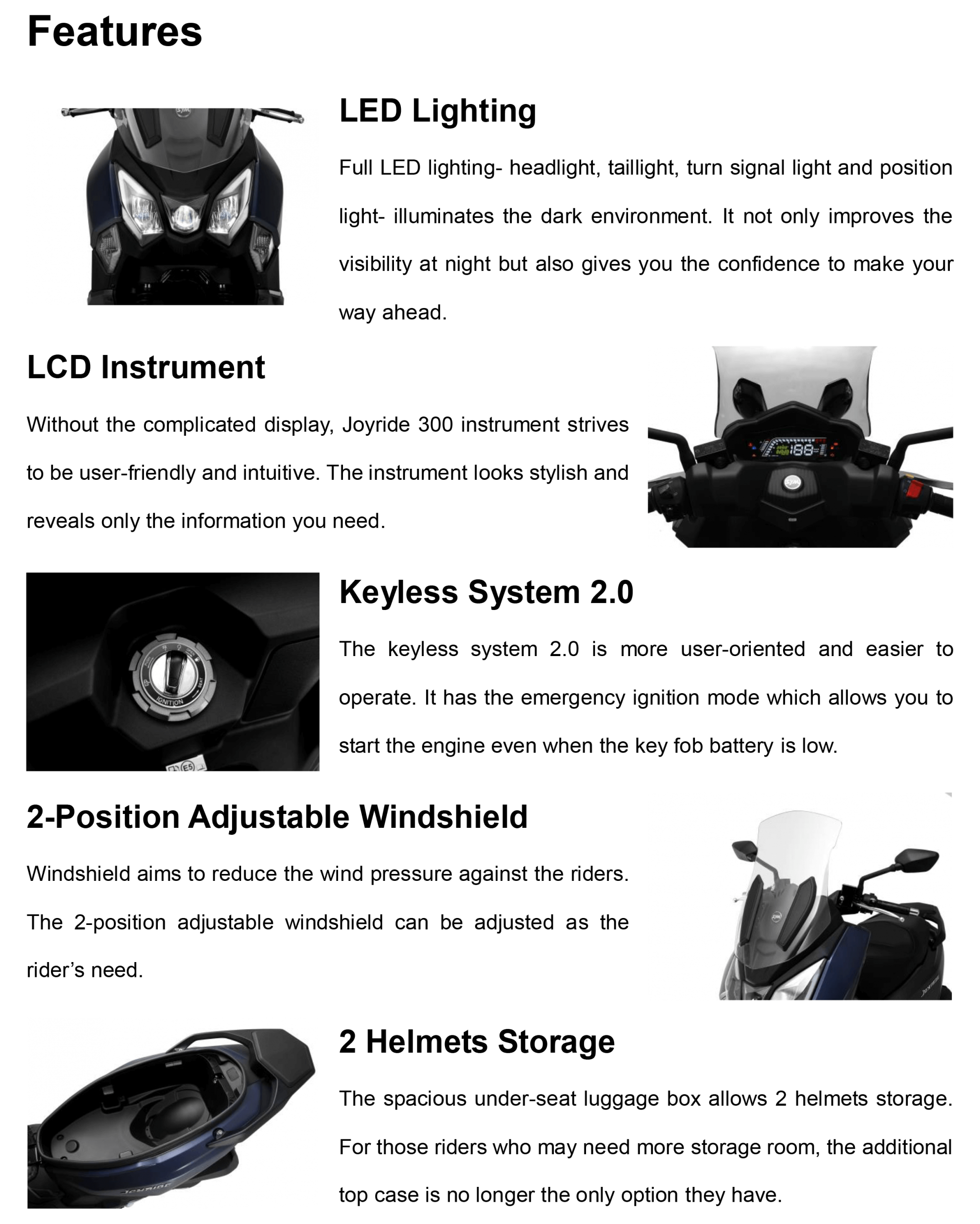 Our exhibition area is divided into 6 parts as Electricity, Adventure, Fashion, Freedom, Dynamic, and Urbanity. The design of the areas show diverse features brought by different models, as if entering a great adventure!